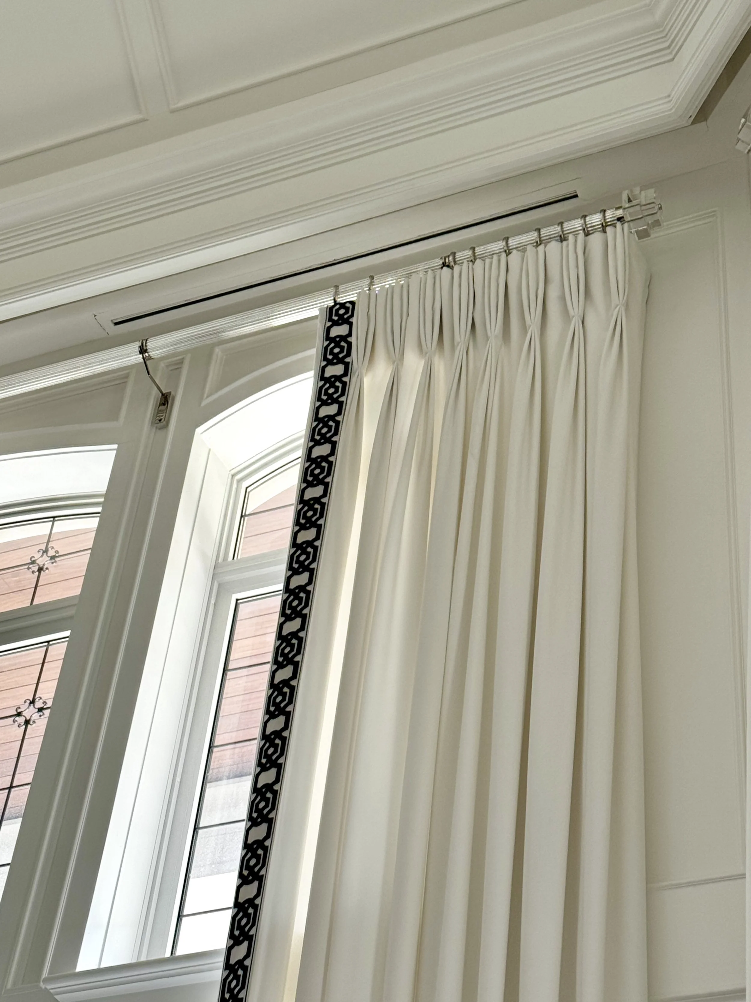 The home in King City presented an opportunity to elevate the existing design with elegant finishing touches. To enhance the aesthetics and functionality of the space, we worked closely with the client to create custom drapes that complement the colour palette and style of the interiors. The drapes, crafted from high-quality fabrics, provide both visual appeal and practicality, ensuring privacy while allowing natural light to filter through. The selection of textures and patterns reflects the client's taste, bringing warmth and sophistication to the living areas.